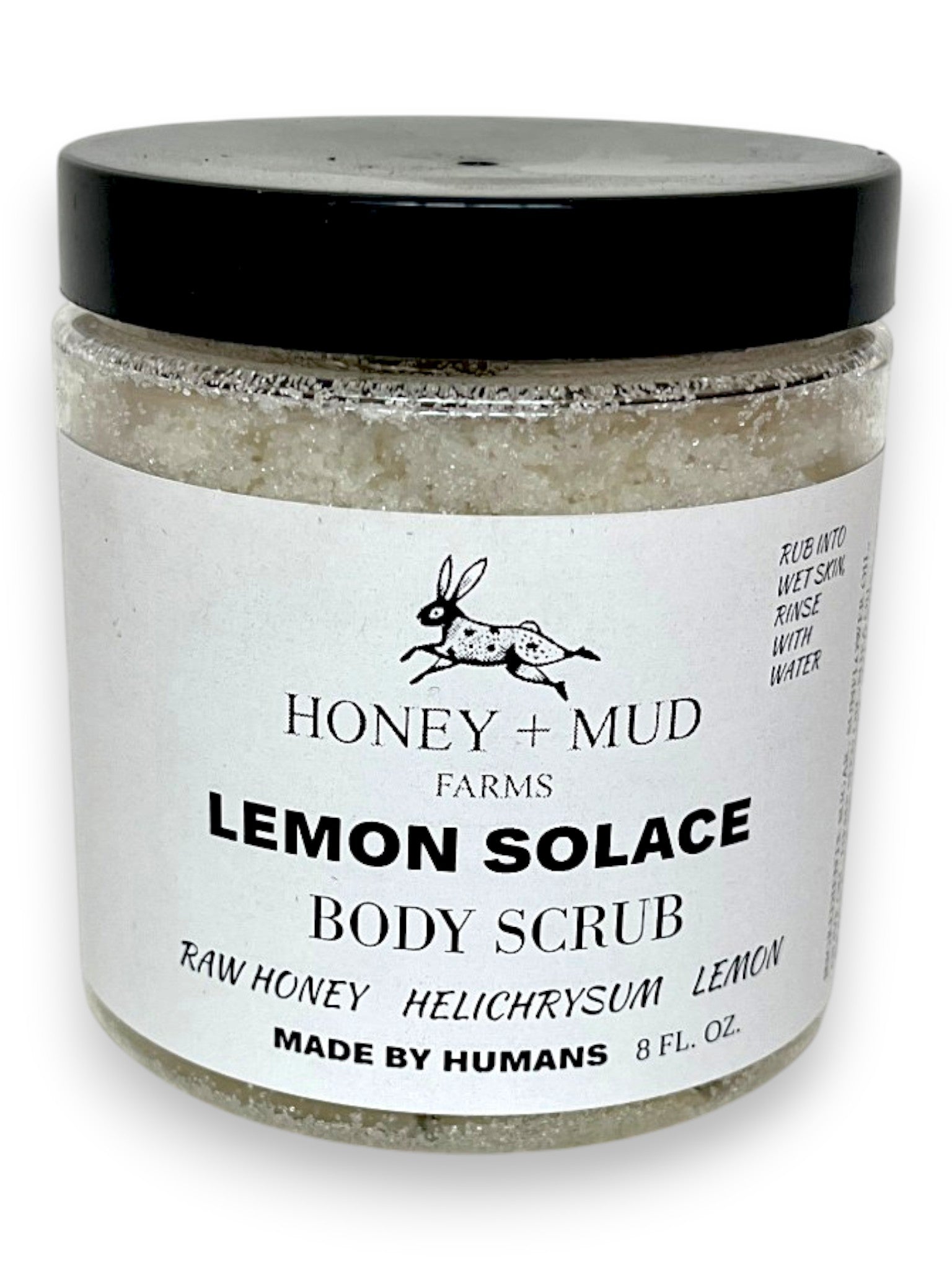 Ingredients: Sugar, Sunflower Oil, Olive Oil, Hemp Seed oil, Shea Oil, Fragrance Oil, Honey, Helichrysum Oil, Lemon Oil.